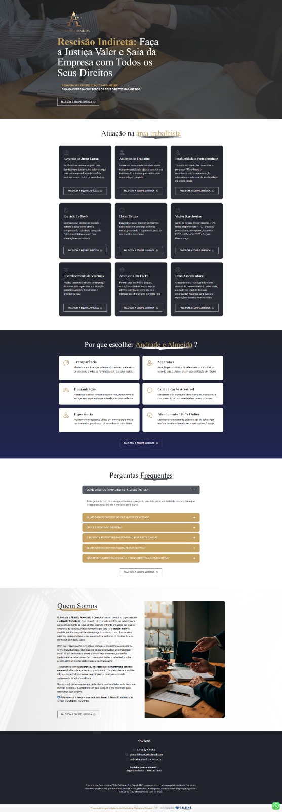A Agência Talismã é referência nacional em Marketing Jurídico, com foco em tráfego pago, automações e geração previsível de clientes para advogados. São mais de 8 anos de mercado, com atuação exclusiva no nicho jurídico, atendendo centenas de clientes ativos em todo o Brasil e contando com um time multidisciplinar formado por especialistas em tráfego, web designers, criação de sites e landing pages, social media, CS e tecnologia.